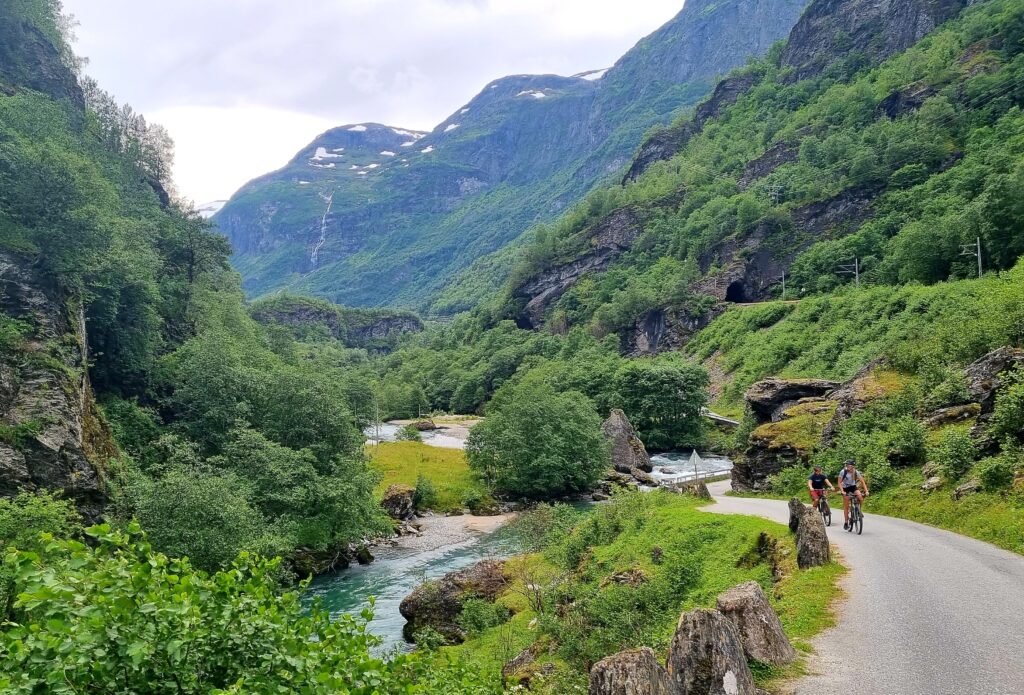 Ride the famous Flåm Railway (Flåmsbana) – one of the steepest train journeys in the world. Bring a bike on the train and cycle down through Flåmsdalen – it’s an easy downhill ride packed with natural beauty.