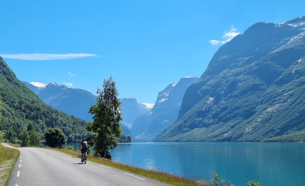 - Rent bikes and ride along Lake Lovatnet all the way to Kjenndalsstova – a dreamy trip.