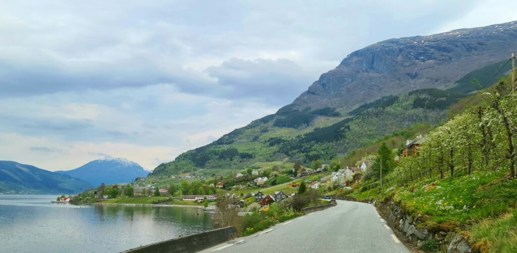 The road along the fjord to Odda is narrow and winding, but it’s one of the most scenic drives in Norway. In May, the fruit trees are in full blossom and the whole valley smells sweet.
