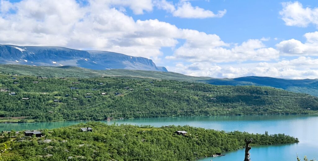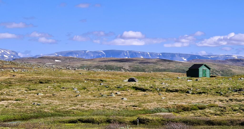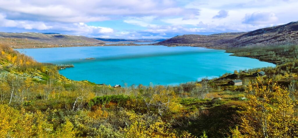 Beyond Halne, the landscape opens even wider. Every curve reveals something new – a mirror-still lake, a wandering reindeer, or simply the vastness of Norway’s wilderness. There are plenty of small parking areas where you can stop for short walks or longer hikes. Trails are clearly marked, and even a 15-minute stroll rewards you with panoramic views and total peace.