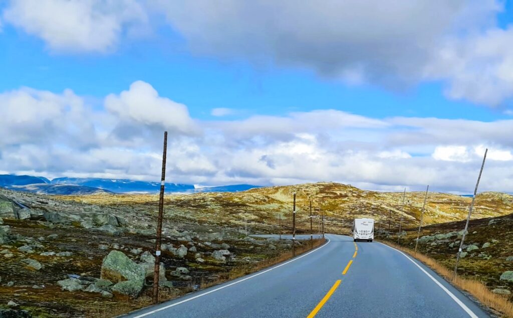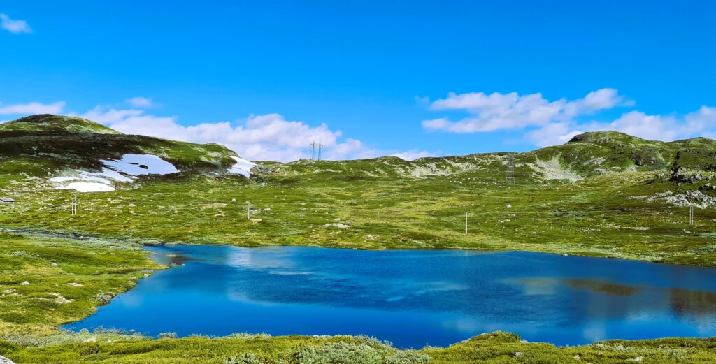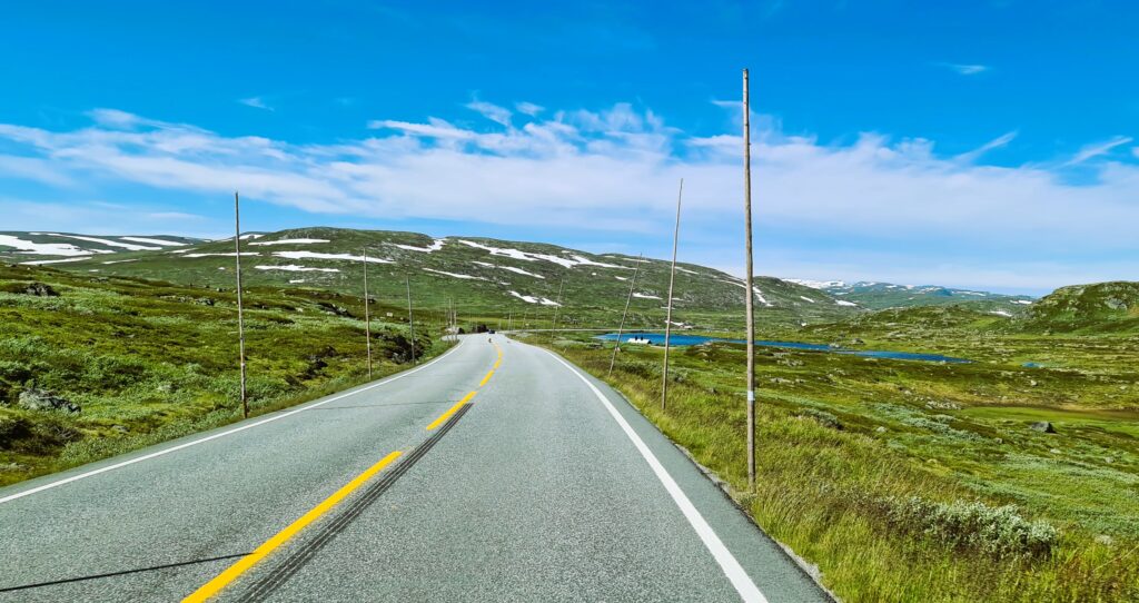 But this road is far more than a way to get from A to B. It’s a scenic drive through raw, untouched wilderness — where shimmering lakes and endless skies set the pace. For miles and miles, the road cuts straight across Hardangervidda National Park, offering a rare sense of space and silence.