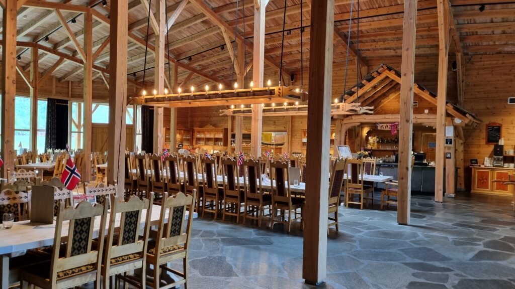 Hardangerviddahallen is an impressive building, worth visiting not only as a stop along the way, but for its architecture and interiors inspired by traditional Norwegian craftsmanship.