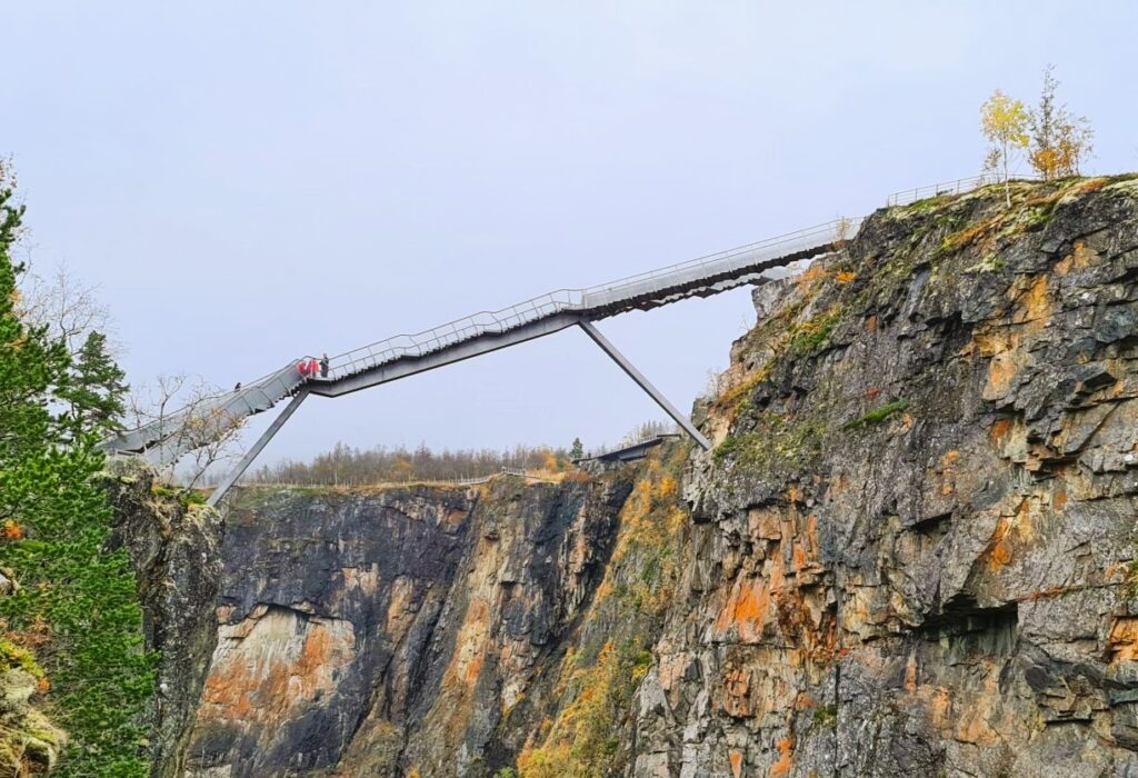 Halfway down the valley, the roar of water fills the air. Then it appears: Vøringsfossen, Norway’s most iconic waterfall. The river from the Hardangervidda plateau plunges 182 meters into a deep canyon, surrounded by modern viewpoints and walkways that hang above the gorge. The suspension bridge across the waterfall is both thrilling and terrifying – but the views are absolutely unforgettable.